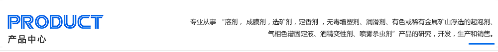 | ? 公司專業從事 “溶劑, 成膜劑,選礦劑,定香劑 ,無毒增塑劑、潤滑劑、有色或稀有金屬礦山浮選的起泡劑、氣相色譜固定液、酒精變性劑、噴霧殺蟲劑”產品的研究,開發,生產和銷售。 |